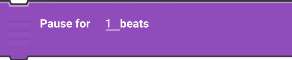 This brick makes the script wait for a specified number of beats before continuing. It’s like taking a short break in a song before playing the next note or sound. Imagine pausing your performance for a moment, counting the beats, and then resuming the action.