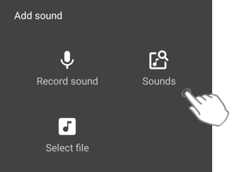 Sounds can be added to both your background and your actors or objects. Tap on the actor or background where you want to add the sound. Go to the sound view and tap the + symbol.