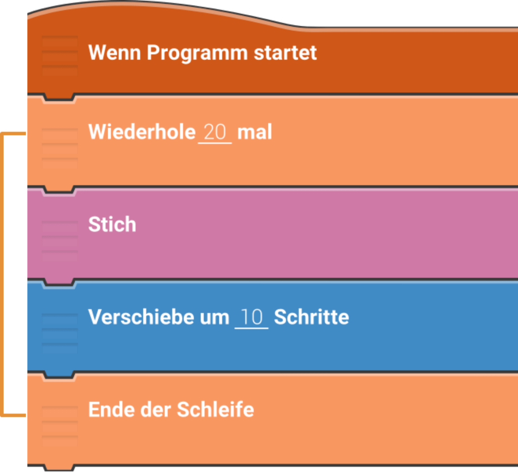 Folgendes Skript sticht in den Stoff und verschiebt dann den Nadelkopf um 10 Schritte.