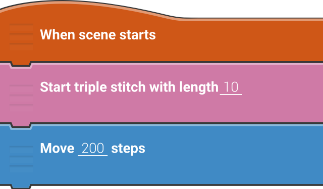 The triple stitch jumps back after the first stitch, stitches, then jumps back forward again and stitches again.
