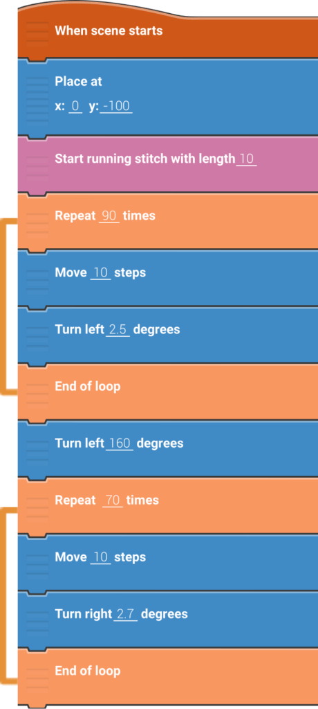 - Create a new Embroidery-Object (see Create Embroidery-Objects) and insert the following scripts: